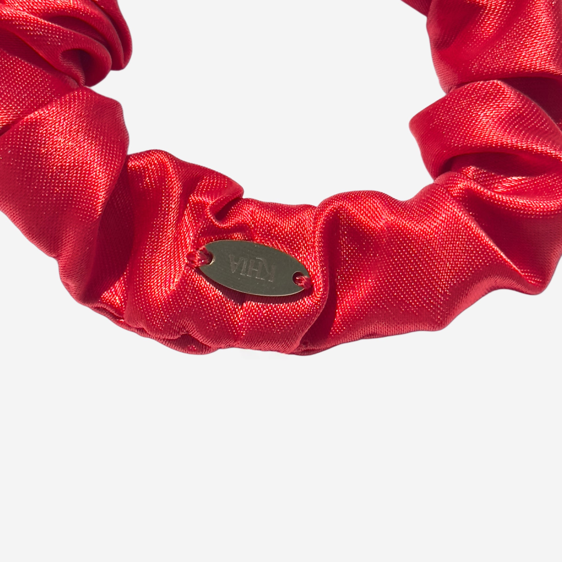 Vervollständigen Sie Ihren Look mit einem Detail, das den Unterschied macht. Das kleine rote Satin-Haargummi Khia ist für alle gedacht, die gerne mit Klasse und Raffinesse auffallen.