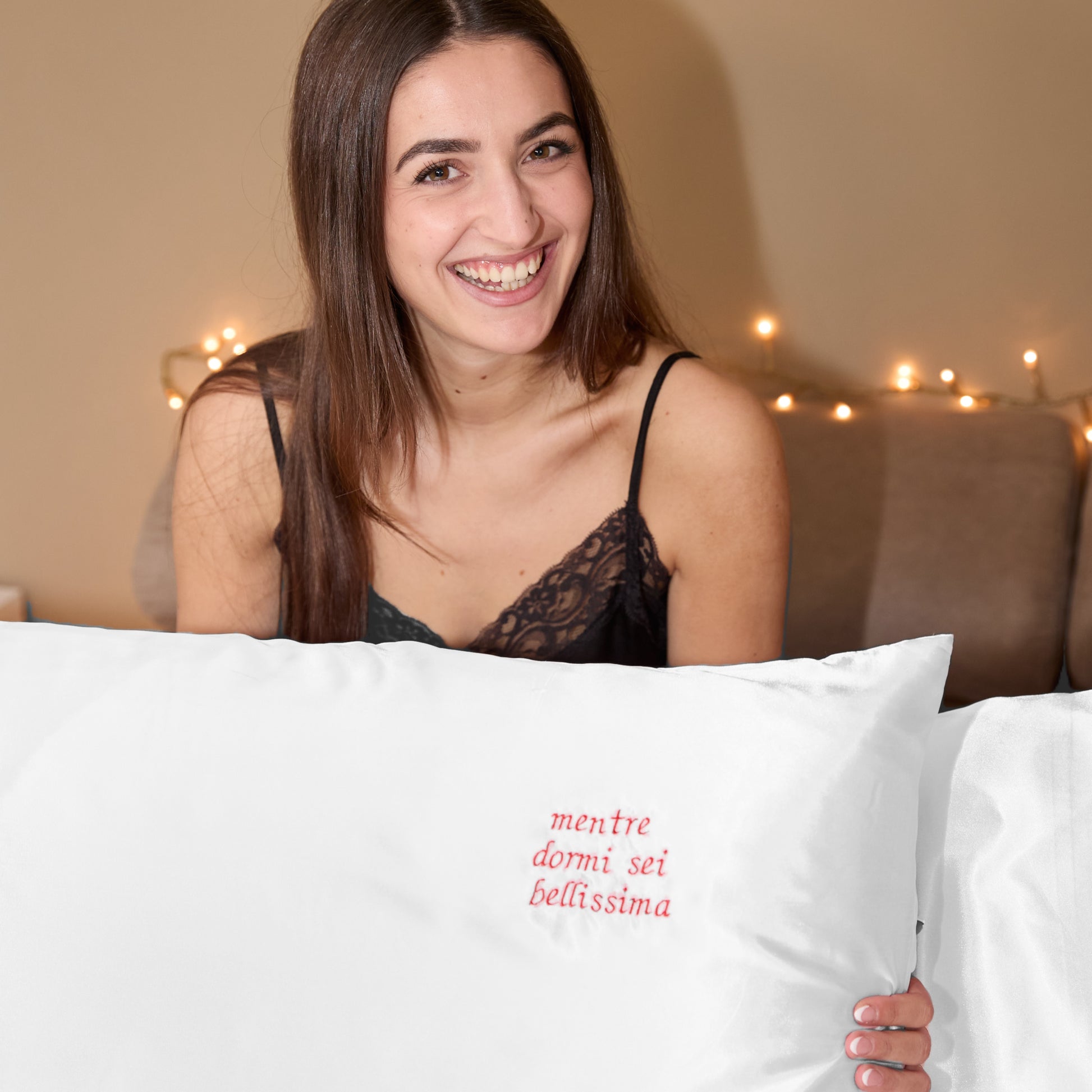- Dimensioni: 51 × 76 cm (normali cuscini da letto italiani)