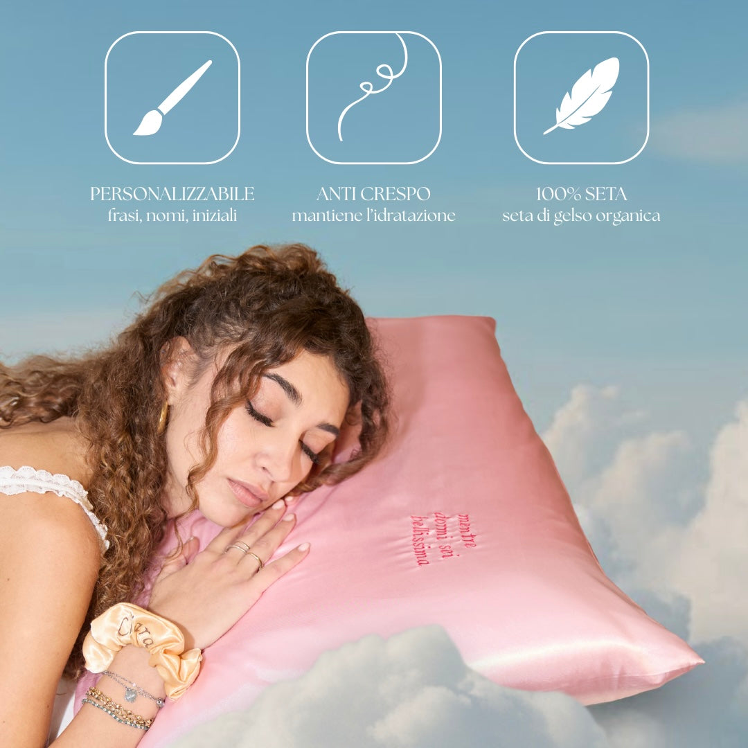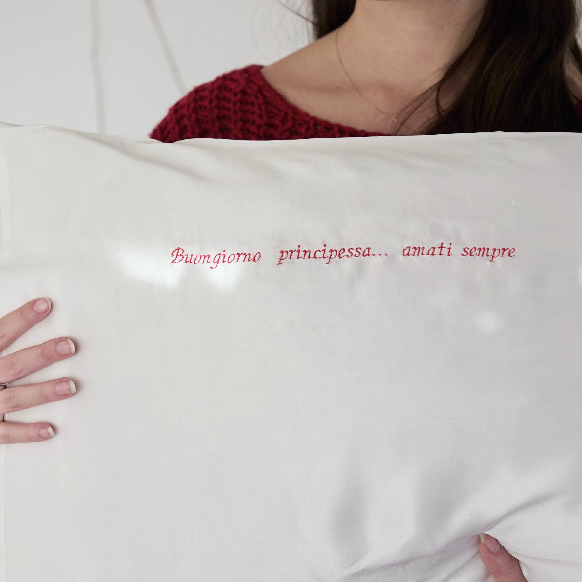 Tutti i prodotti KHIA, incluse le federe in seta personalizzate, vengono realizzati a mano.